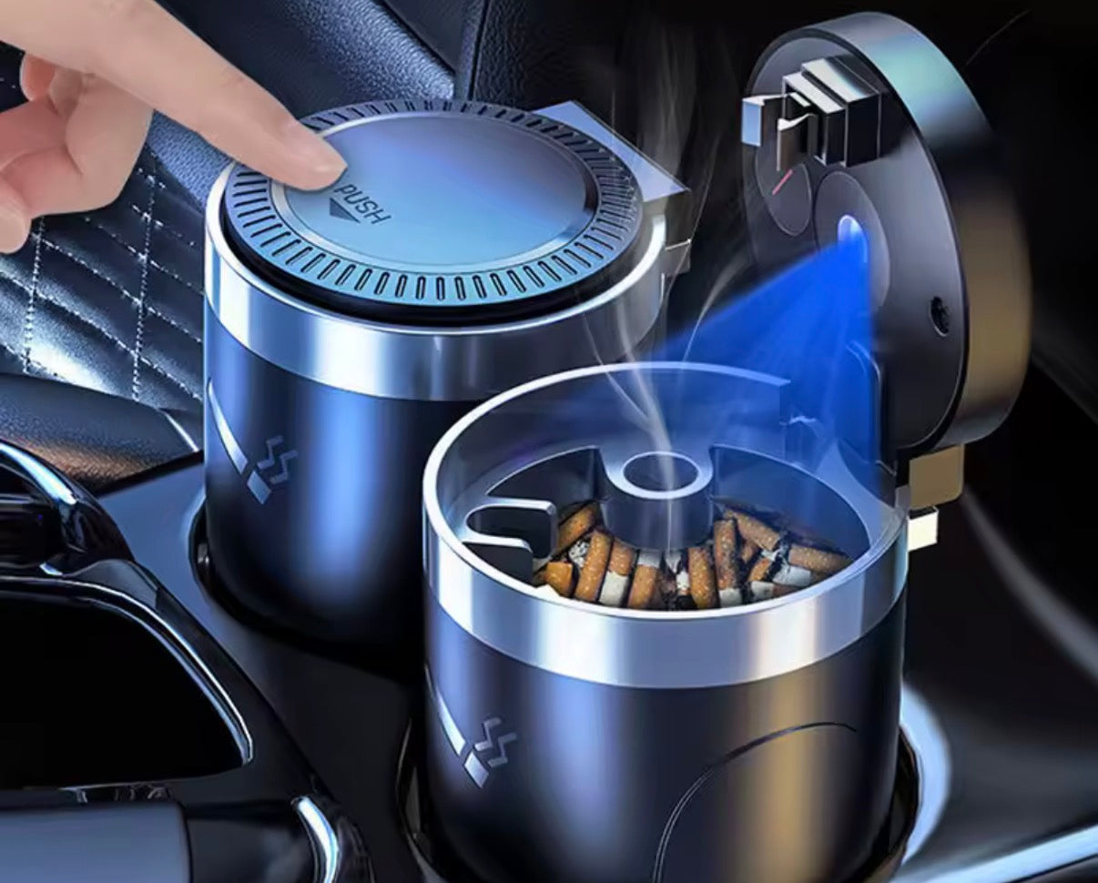 Scrumiera are o lumina led care se porneste automat atunci cand capacul este deschis